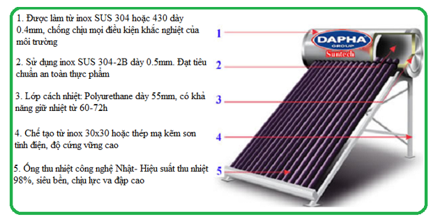 Ưu điểm máy nước nóng năng lượng mặt trời Dapha